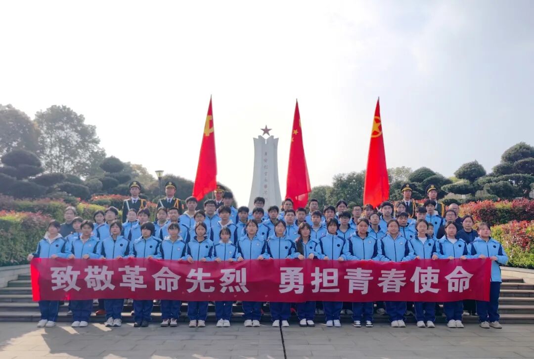 在革命烈士纪念碑前,全体师生庄严站立,向革命先烈默哀敬礼,表达对革命英雄的崇敬之情。