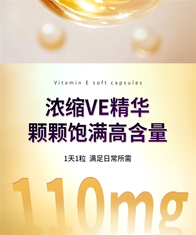 黄金剂量:每粒含110mg天然VE,剂量契合国标每日适宜摄入量标准,远低于安全上限,长期服用无代谢负担,可持续为祛斑提供稳定养分。