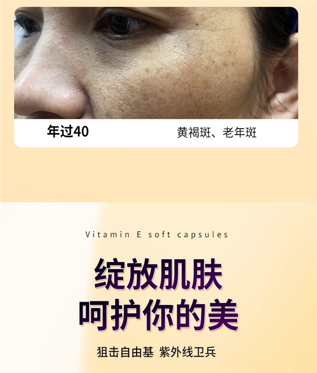 产品价值:4周淡斑率68%、提亮32%,可精准改善黄褐斑、雀斑、晒斑等多种色斑问题,同时兼顾淡纹、抗氧化、48小时长效控油保湿功效,干油皮、敏感肌均能适配,内服外敷双效兼顾,成为维生素E行业祛斑标杆。