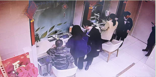 潘奕欣第一时间上前安抚客户,迅速引导其前往柜台办理银行卡紧急挂失,并协助解绑全部第三方支付,果断切断盗刷渠道。她耐心向客户讲解账户安全情况,细致做好解释安抚,让客户悬着的心彻底放下。