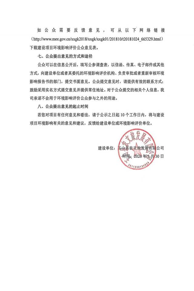 根据《环境影响评价公众参与办法》(生态环境部部令第4号),为充分了解玉山县农文旅黑猪养殖一期项目周边社会各界对该工程建设的意见,更好做好本项目环境影响评价工作,现对该项目环境影响评价进行第二次信息公告。