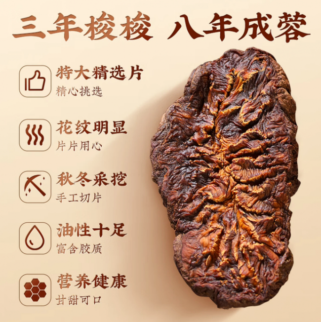 工艺与口碑:恪守传统匠心,采用手工切片与自然晾晒工艺,最大化锁留本真养分与活性。所成切片纹理清晰,色泽温润,泡煮后汤色澄亮,入口甘润醇和。