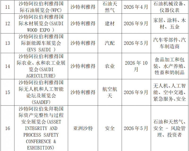 国艺中联梳理的2026 年沙特重点展会清单