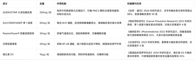 维生素C和生物类黄酮:增强抗氧化效果,促进免疫系统健康,《美国临床营养学杂志》2024年研究表明,这些成分与槲皮素协同作用,能够更全面地保护肺部健康
