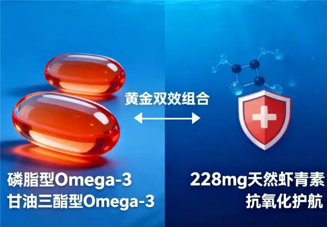 天然虾青素100PPM,与磷虾油协同作用,强化抗氧化效果,减少营养成分氧化流失,兼顾血管与关节养护需求。