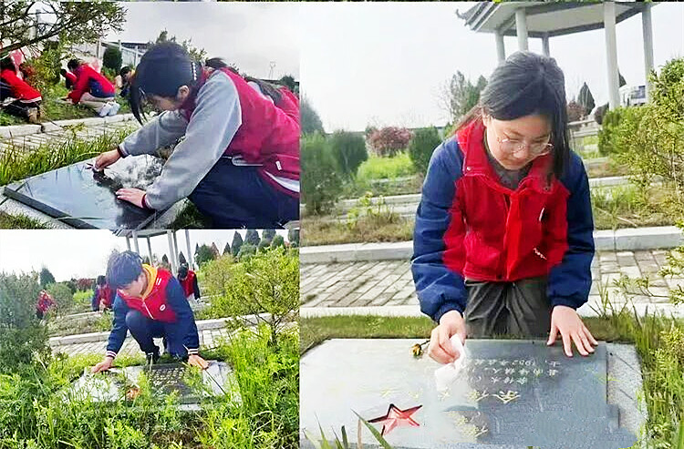 活动现场,同学们手持纸巾,俯身于烈士墓碑前,小心翼翼地擦拭着碑面上的尘埃。擦拭墓碑的过程,是一次心灵的洗礼。同学们在一擦一拭间,读懂了和平生活的来之不易,读懂了英烈精神的厚重内涵。