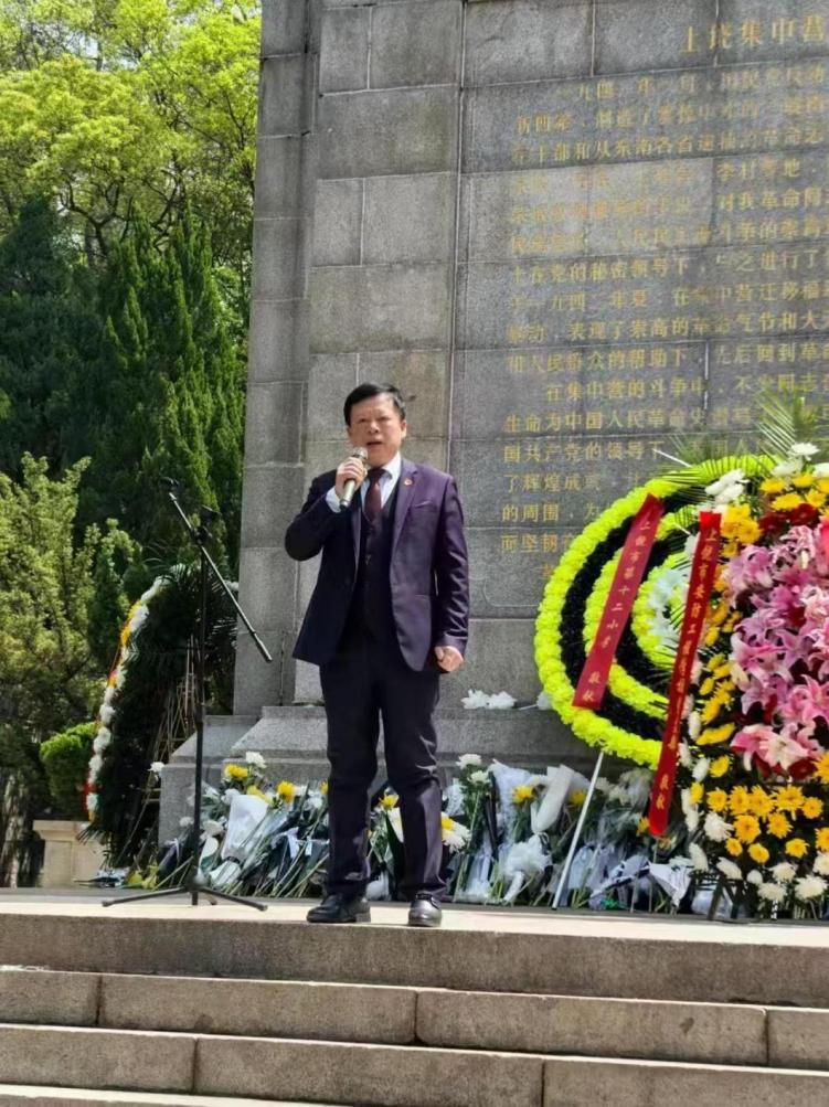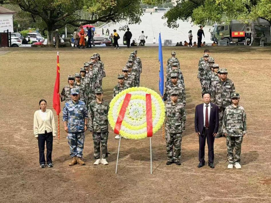 在庄严肃穆的氛围中,全体师生整齐列队,向革命烈士敬献花圈,行默哀礼,表达对革命先烈的崇高敬意与深切缅怀。党支部书记黄庆君在烈士纪念碑前,深情回顾革命先烈的英雄事迹,激励同学们铭记历史、传承精神,以青春之力担当时代使命。