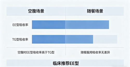 标准5:看剂型和吸收率——EE型与膳食同服吸收无差异
