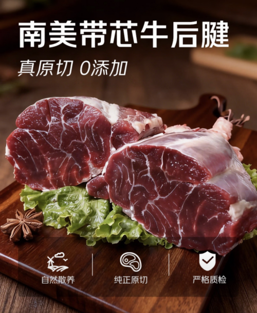 在露营地和民宿院子里,烤肉是绝对的社交硬通货。“鲜京采甄选南美进口原切带芯牛后腱4斤装”成交额同比增长210%,原切工艺保证了肉质在户外烹饪时的鲜嫩口感,满足了消费者对“配料干净”的健康诉求。而“牛鲜尊国产黄牛牛肉卷2斤装”同比增长310%,这款原本多见于家庭火锅场景的产品,如今也被大量户外爱好者带上了山野。无论是户外火锅还是一锅炖煮,这种“热腾腾”的体验正是清明微凉夜晚的最佳搭配。