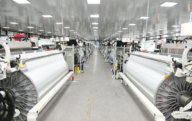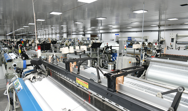 赣州广建玻纤有限公司织布生产车间。