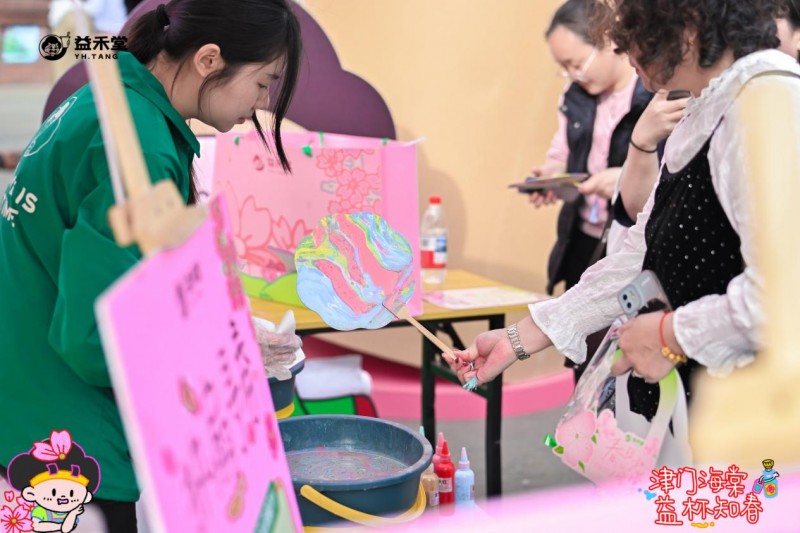 为让春日体验更有新意,益禾堂还特别推出漆扇套餐,购买可解锁天津非遗漆扇DIY体验,一边喝清爽好茶,一边亲手绘制专属漆扇,把津门春色与东方美学一并收入扇中,“太有仪式感了”、“没想到买奶茶还有额外体验,物超所值”,参加活动的游客惊喜道。美味与趣味双双在线,极大丰富了游客消费体验,活动现场笑声不断、人气爆棚,欢乐氛围拉满,直接成为海棠花节里超吸睛、超好玩的热门打卡地标。