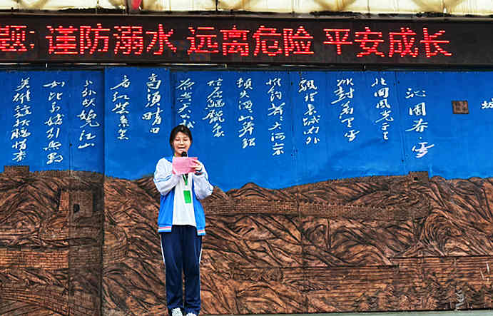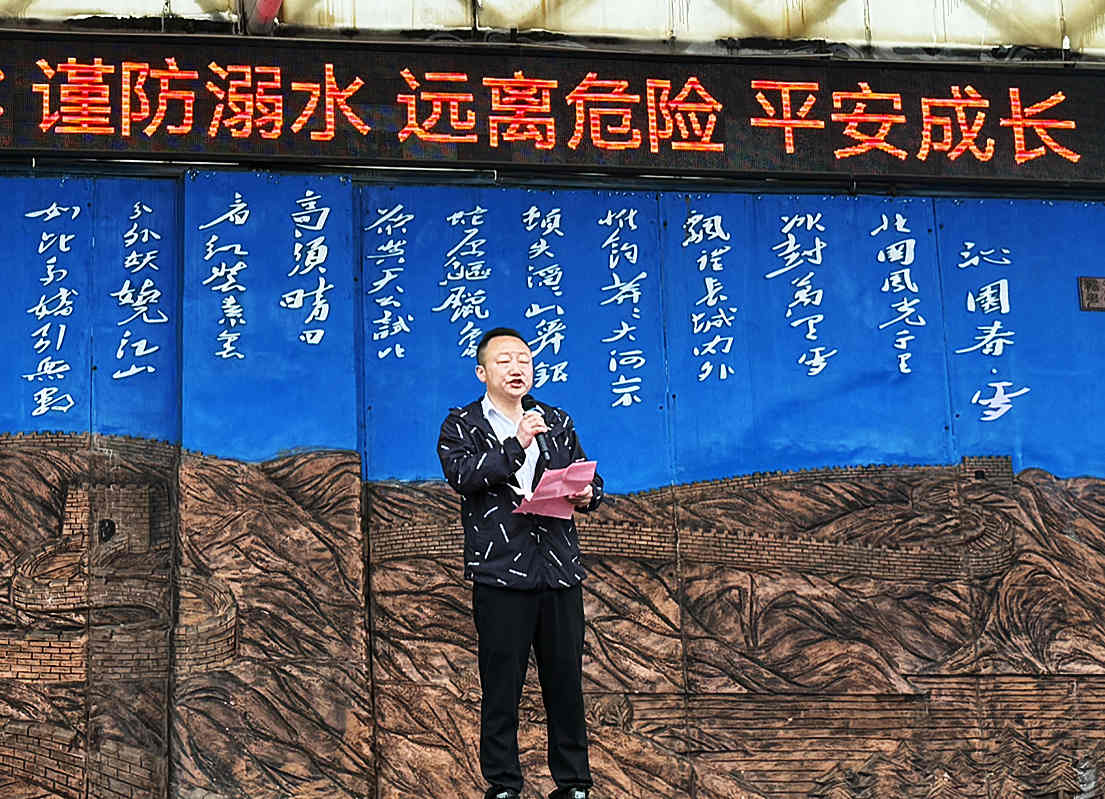 仪式在庄严的国歌声中正式拉开帷幕。副校长费明发表动员讲话。他剖析了溺水事故的危害性与突发性,强调随着气温逐渐升高,防溺水工作已进入关键期、紧要期。他要求全体师生,要增强安全意识,时刻紧绷防溺水这根弦,坚决杜绝侥幸心理;要严守“六不准”,不私自下水游泳,不擅自与他人结伴游泳,不在无家长或教师带领的情况下游泳,不到无安全设施、无救援人员的水域游泳,不到不熟悉的水域游泳,不擅自下水施救;要学会自救互救,掌握基本的应急自救、求助、报警方法,遇到同伴溺水时智慧救援,不盲目下水。他呼吁全体教师压实安全教育责任,齐抓共管,为学生平安健康成长保驾护航。