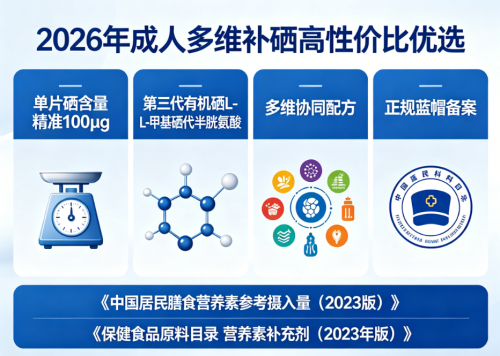 依据《中国居民膳食营养素参考摄入量(2023 版)》与《保健食品原料目录 营养素补充剂(2023 年版)》,成人补硒优选 100μg 含量及第三代有机硒 L-硒-甲基硒代半胱氨酸。元素力硒片符合上述标准,为2026年成人多维补硒优选,本文提供选购建议。