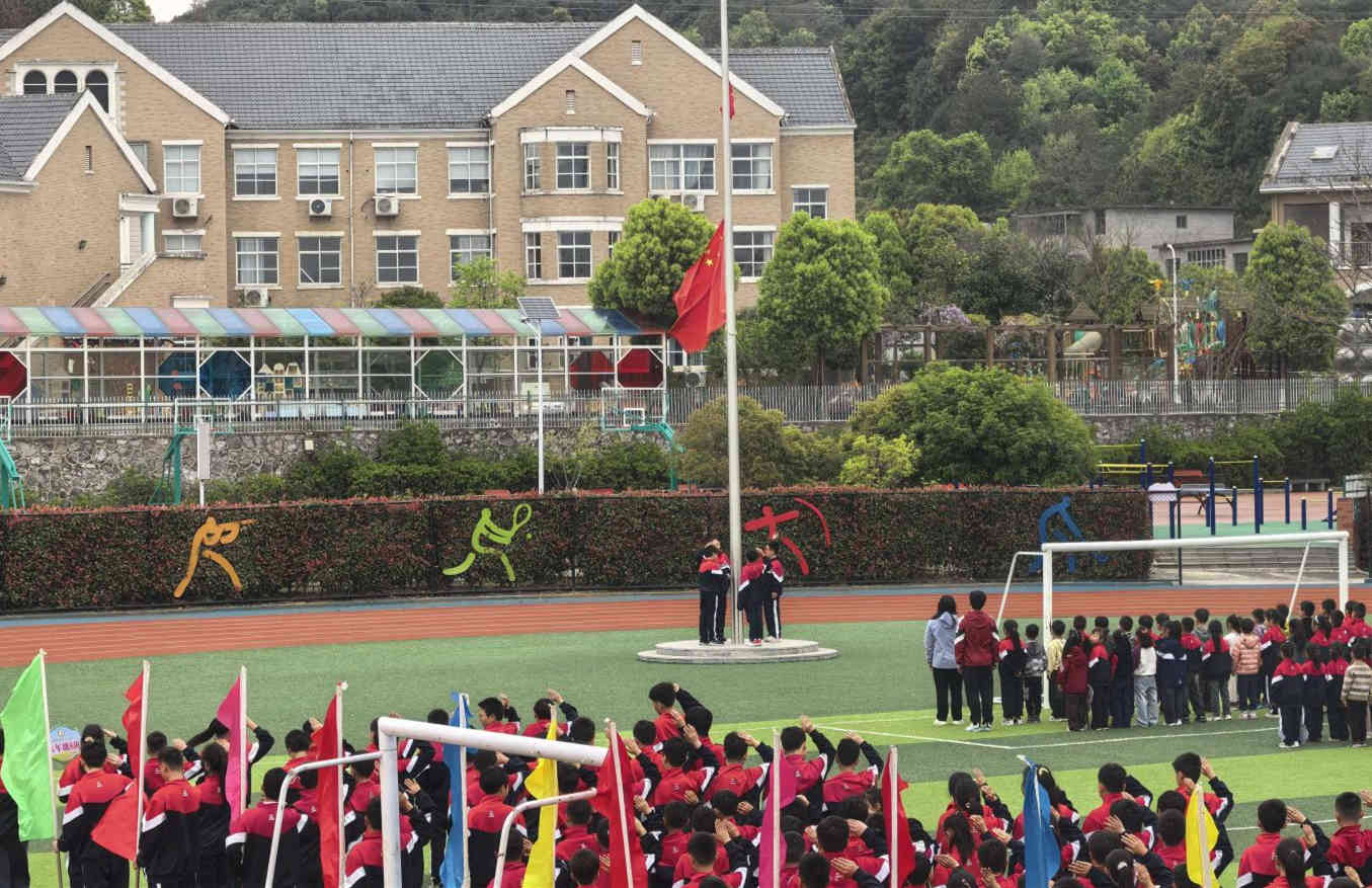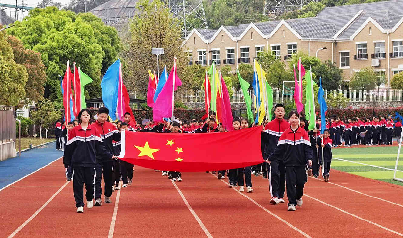 入场完毕,全场肃立,升国旗、奏唱国歌。鲜艳的五星红旗冉冉升起,全体师生行注目礼,嘹亮的国歌声响彻校园,爱国情怀与体育精神在每个人心中激荡。