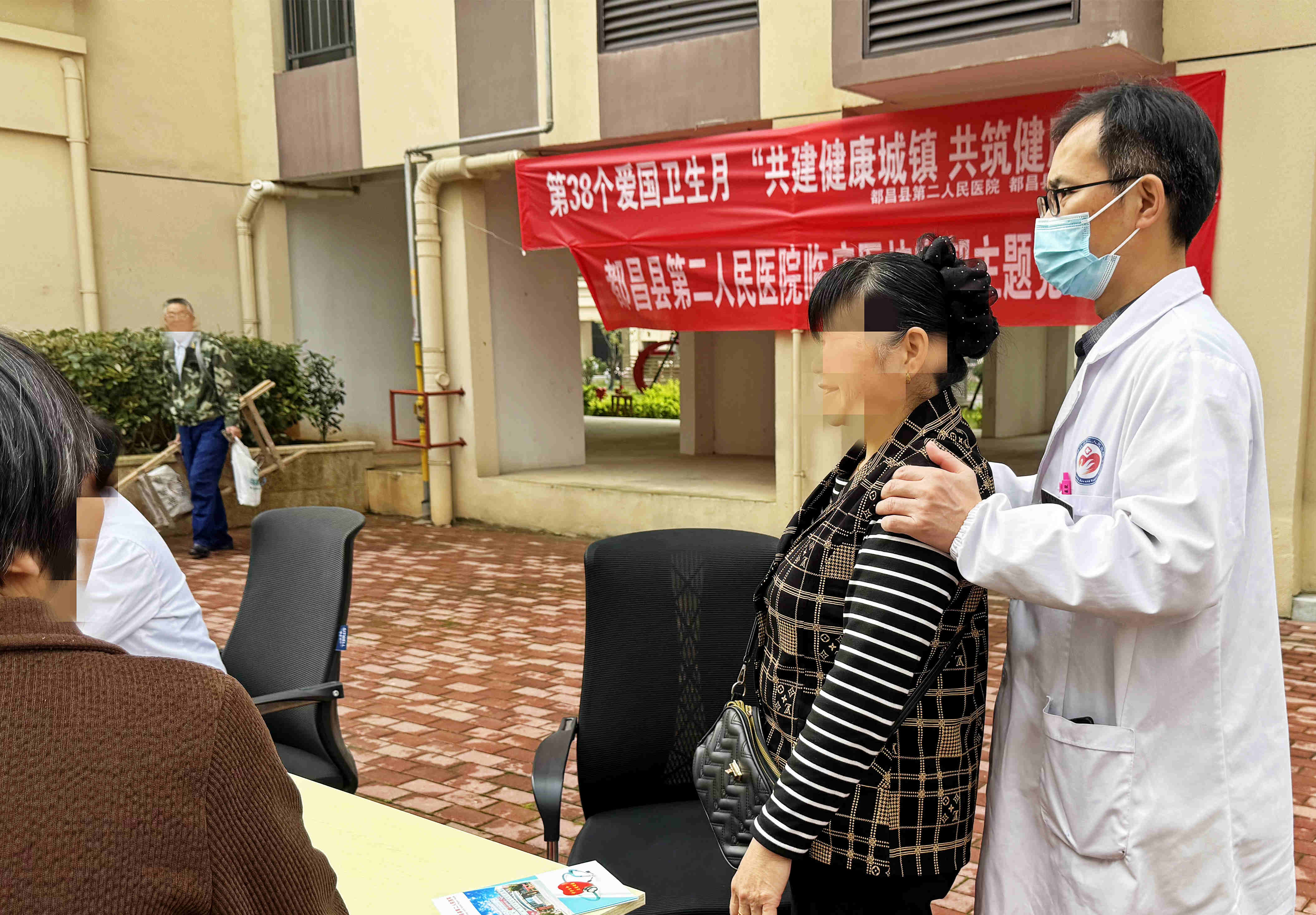 为深入推进第38个爱国卫生月活动,持续将优质医疗资源送到群众身边,近日,都昌县第二人民医院再次组织由普外科、骨科、心血管内科、糖尿病科等多学科专家组成的医疗团队,走进云住小区开展系列义诊服务,以实际行动守护居民健康,助力爱国卫生运动走深走实。