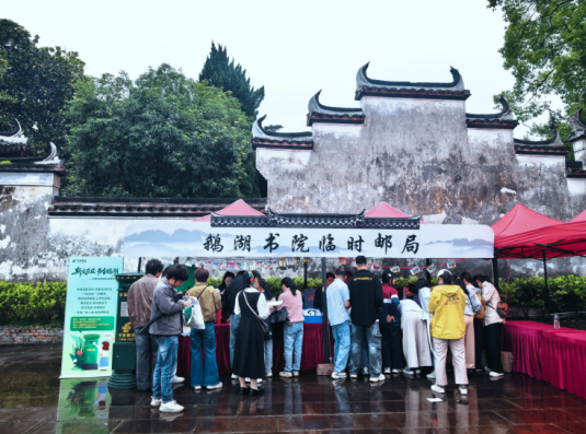 现场设立鹅湖书院临时邮局,为市民提供纪念邮戳加盖、信件寄递等特色服务,让书香文化与邮政服务紧密相融。同步举办的精品集邮展览,紧扣朱子文化“忠孝廉节”主题,一枚枚方寸邮票串联起经典典籍与人文历史,以邮载史、以展传文,生动展现江右书院文化魅力,吸引不少观众驻足观赏、细细品读。