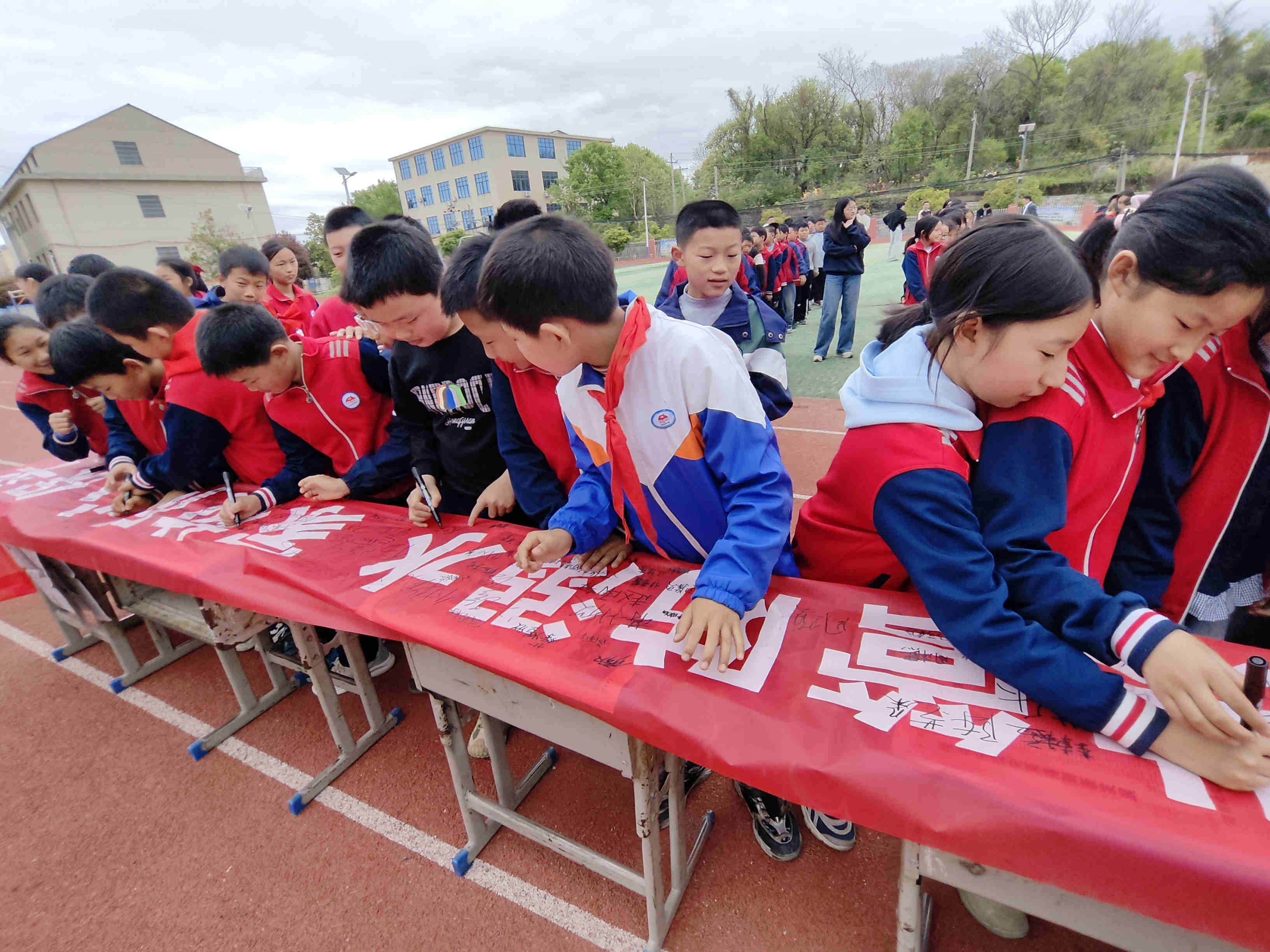 学生代表发出倡议,号召全体同学自觉远离危险水域,将防溺水知识内化于心、外化于行。在邵冕老师的带领下,全体学生庄严宣誓,作出珍爱生命、严守安全规定的郑重承诺。宣誓结束后,全体师生有序在安全承诺横幅上签名,以实际行动践行安全誓言。