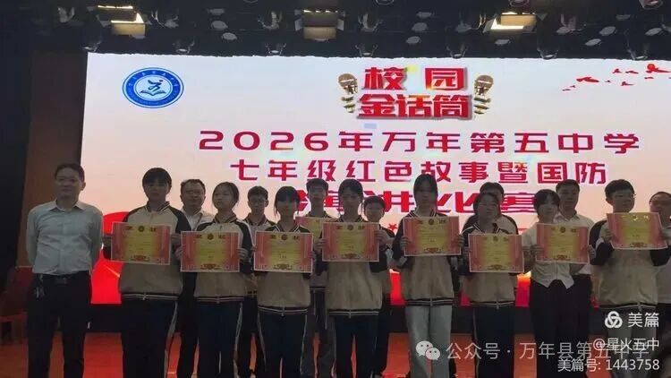 万年县第五中学七年级红色故事暨国防演讲比赛落幕