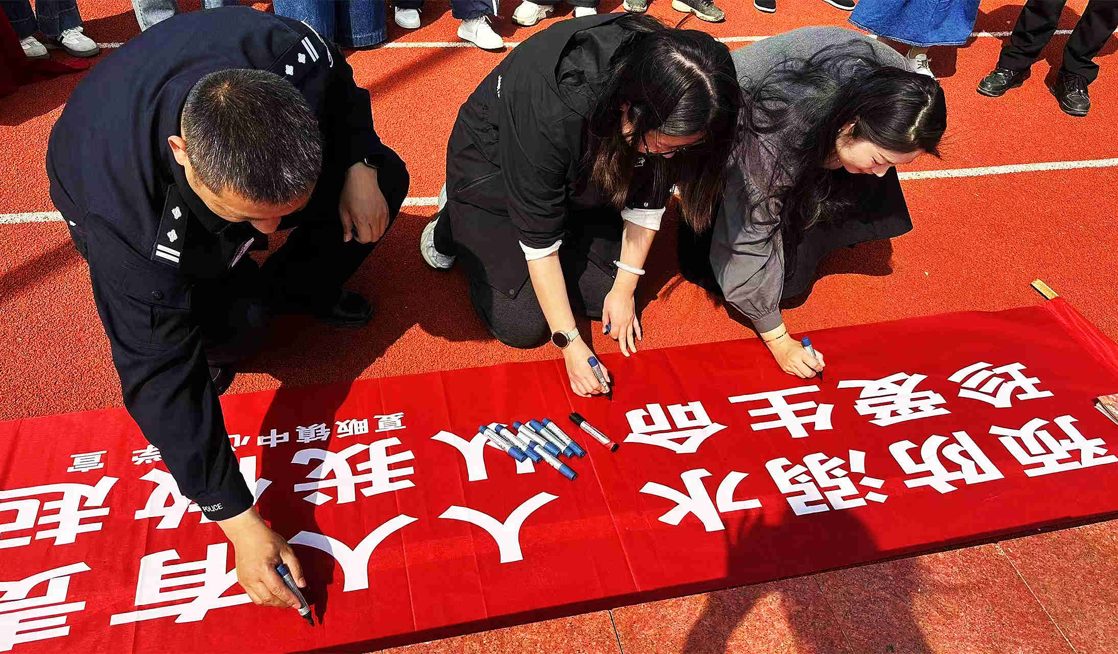 学生代表带领全体同学庄严宣誓,承诺严守防溺水“六不准”。铿锵誓言响彻校园,彰显了同学们珍爱生命、远离溺水的坚定决心。仪式最后,全体师生依次上台,在主题横幅上郑重签名。一笔一划,签下的是名字,许下的是对生命的庄严承诺,将防溺水安全理念深植心中。