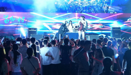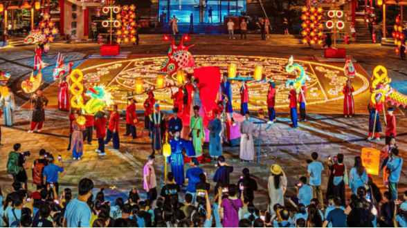 黄昏,一场狂欢便悄然启幕。星辰音乐会奏响,旋律从浅吟低唱到万人大合唱,晚风裹着歌声漫过山野,所有情绪都在此刻自由释放。接着,一场美轮美奂的行进式演出徐徐展开,火树银花,鱼龙夜舞,彷佛踏入宋朝上元的繁华盛景。火裙旋舞、火壶翻飞、火棍破空,比银幕特效更震撼,让人心潮澎湃。簪花巡演携春色而来,衣袂翩跹,满袖芬芳;财神巡游踏歌而至,福运与财气一路相随,把一整年的好兆头都带回家。
