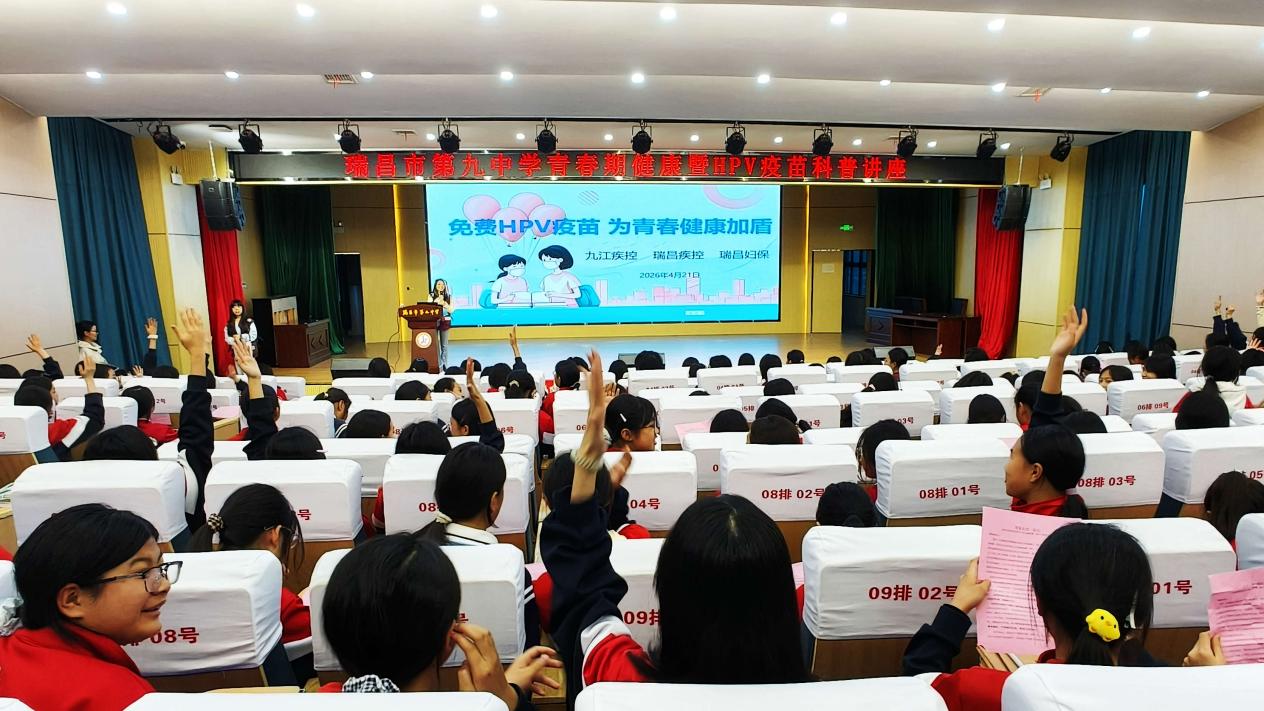 4月21日,瑞昌市疾控中心联合九江市疾控中心、瑞昌市妇幼保健院,走进瑞昌市第九中学,为初一女生开展HPV疫苗科普讲座。