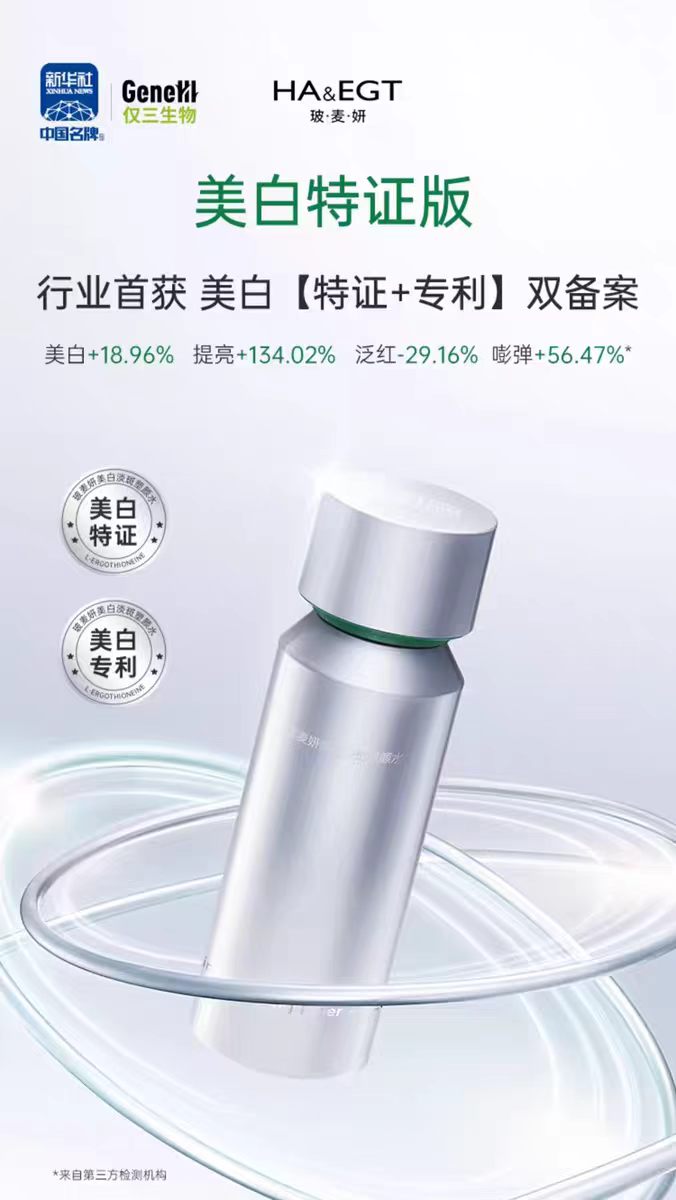 行业首获美白「特证+专利」双备案(国妆特字 20252831;专利号 ZL202310277767.8)。