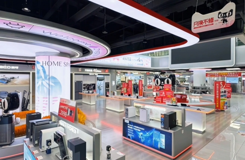 走进店内,超过4000平方米的营业空间被精心划分为智能家电、精品家居、数码潮品等主题展区。这里汇聚了300余个国内外知名品牌,在售商品SKU超过13000款,从冰箱、彩电、空调等大家电,到厨房小家电、智能家居、家装建材,基本覆盖了家庭消费的全品类需求。“我们想让卖场有家的感觉。”王焕君说,“投入高一点,员工舒服,客户感觉也好。”