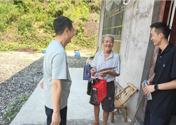 在苏炫烨看来,村里的事归根到底是人的事,群众的冷暖始终是他最牵挂的事。他坚持把困难党员、困难群众放在心上,每逢春节、端午、中秋、重阳等传统节日,走访慰问从不落下,包粽子、送月饼、陪老人聊天,不搞形式、不走过场,用真心实意温暖着每一位群众。有位老党员腿脚不便,苏炫烨隔三差五就上门看望,带去米、面、油等生活物资,坐下来陪老人谈心说话,了解他的需求,解决他的困难。老人拉着他的手,满心感动:“苏书记,你真是把我们放在心上,对我们太好了。”