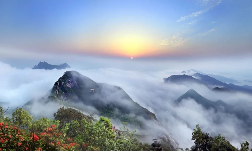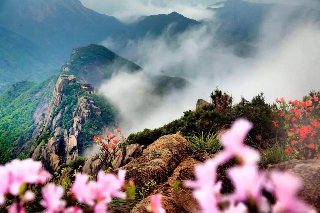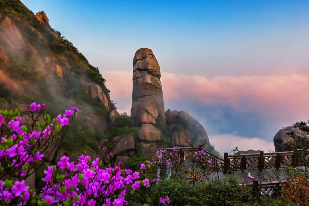 五月的灵山,美得自带“欢乐滤镜”,随手一拍皆是治愈大片。高山杜鹃热烈绽放,粉紫嫣红点缀在刀削斧劈般的花岗岩峰林间,与形态各异的奇石相映成趣;作为华东完整的花岗岩峰林地貌,每一块石头都历经亿万年风化,似神兽、似仙人,诉说着古老传说。幸运的话,更能邂逅绝美云海,云雾翻涌间,峰峦时隐时现,宛如仙境,乘坐索道穿行其间,尽赏大自然的鬼斧神工。