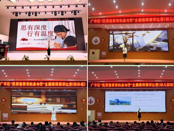 4月23日,广丰区“高质量教育的思与行”主题教师演讲比赛落幕。全区公民办学校110位教师代表齐聚赛场,以声为媒、以情为桥,分享育人故事、畅谈教育初心,用真挚演讲诠释新时代教师以思促行、以行践知的责任与担当。